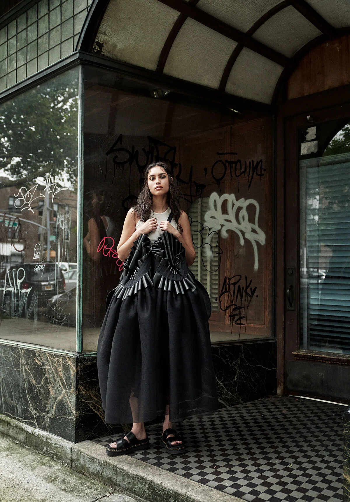 Jasmyn wears dress MELITTA BAUMEISTER, sandals DR MARTEN’S