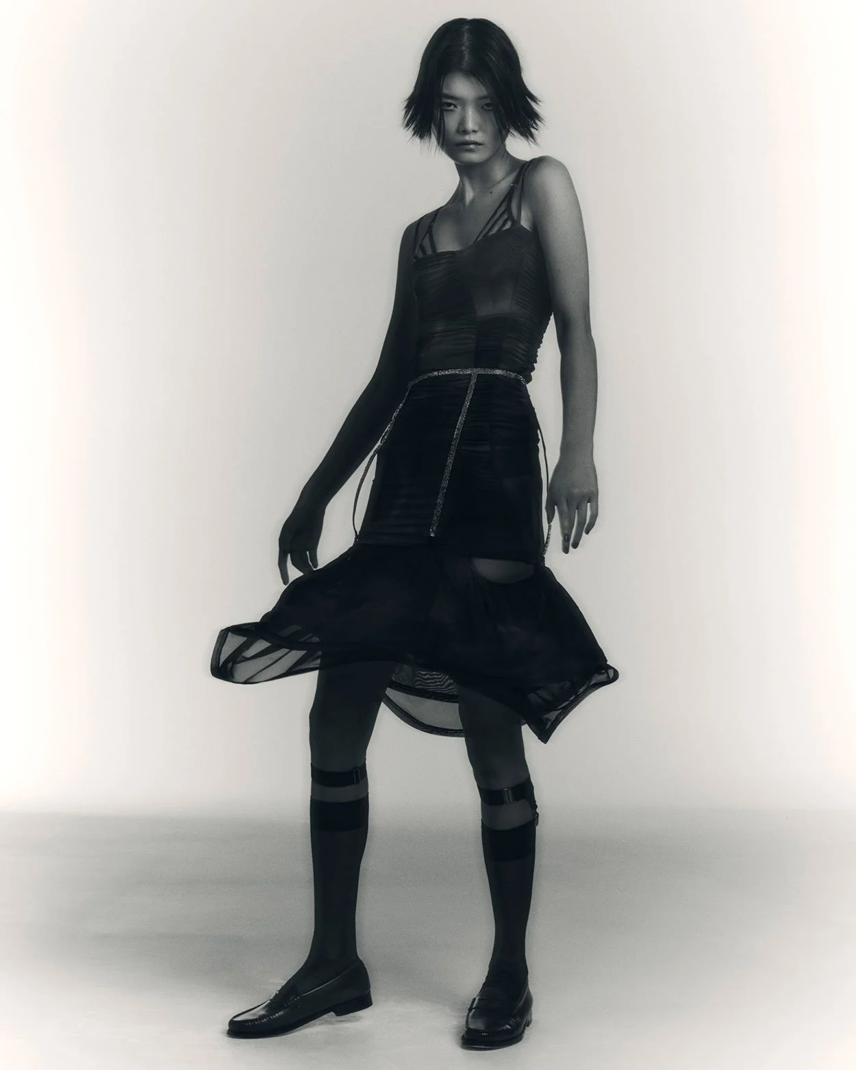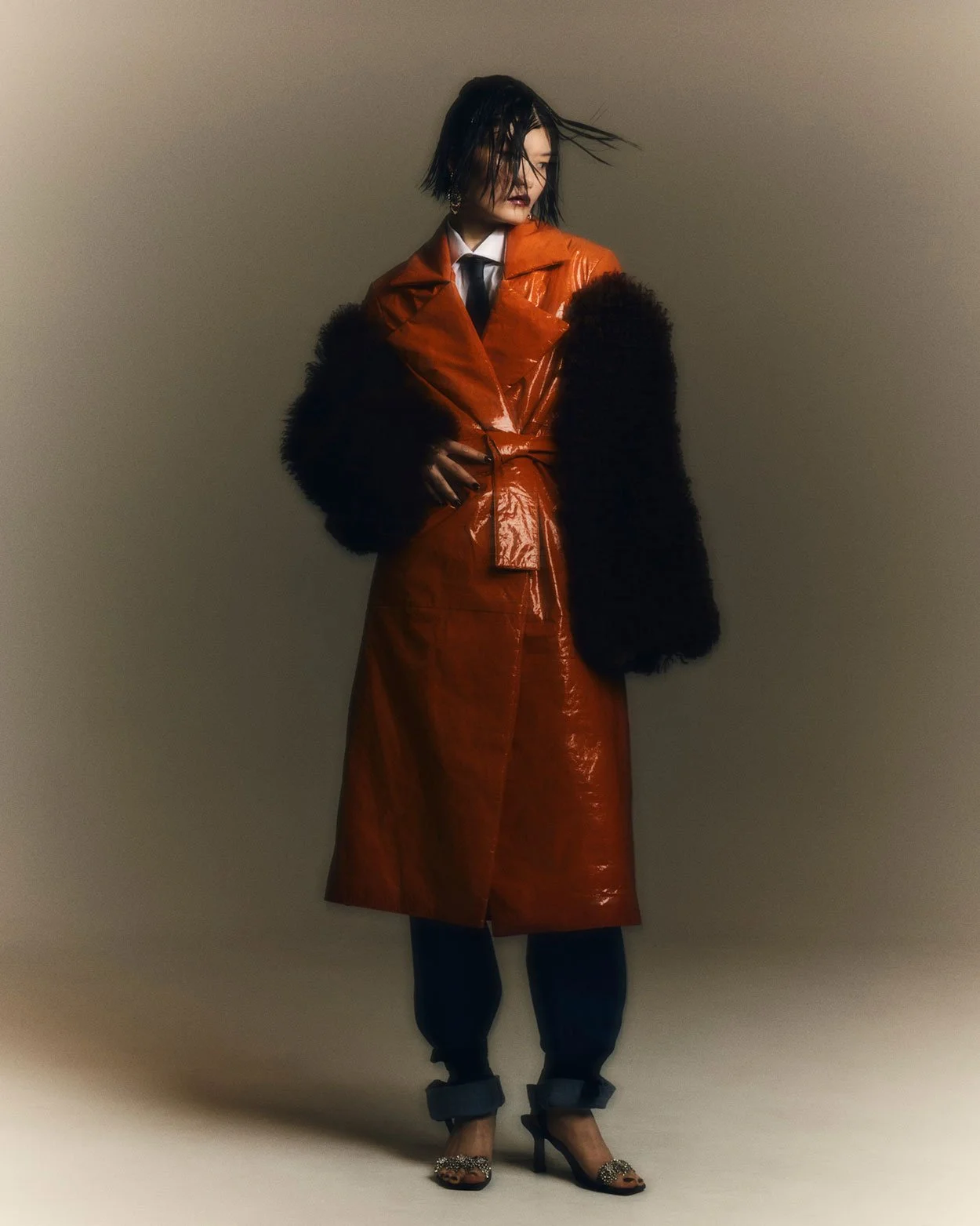 Latex, shearling, leather, sequins… she does it effortless. Juxtaposing textures, we join the up-and-coming model Ka Wai on a trip back to the 90s music scene. Her expression says it all: she’s not afraid to be bold and sexy.