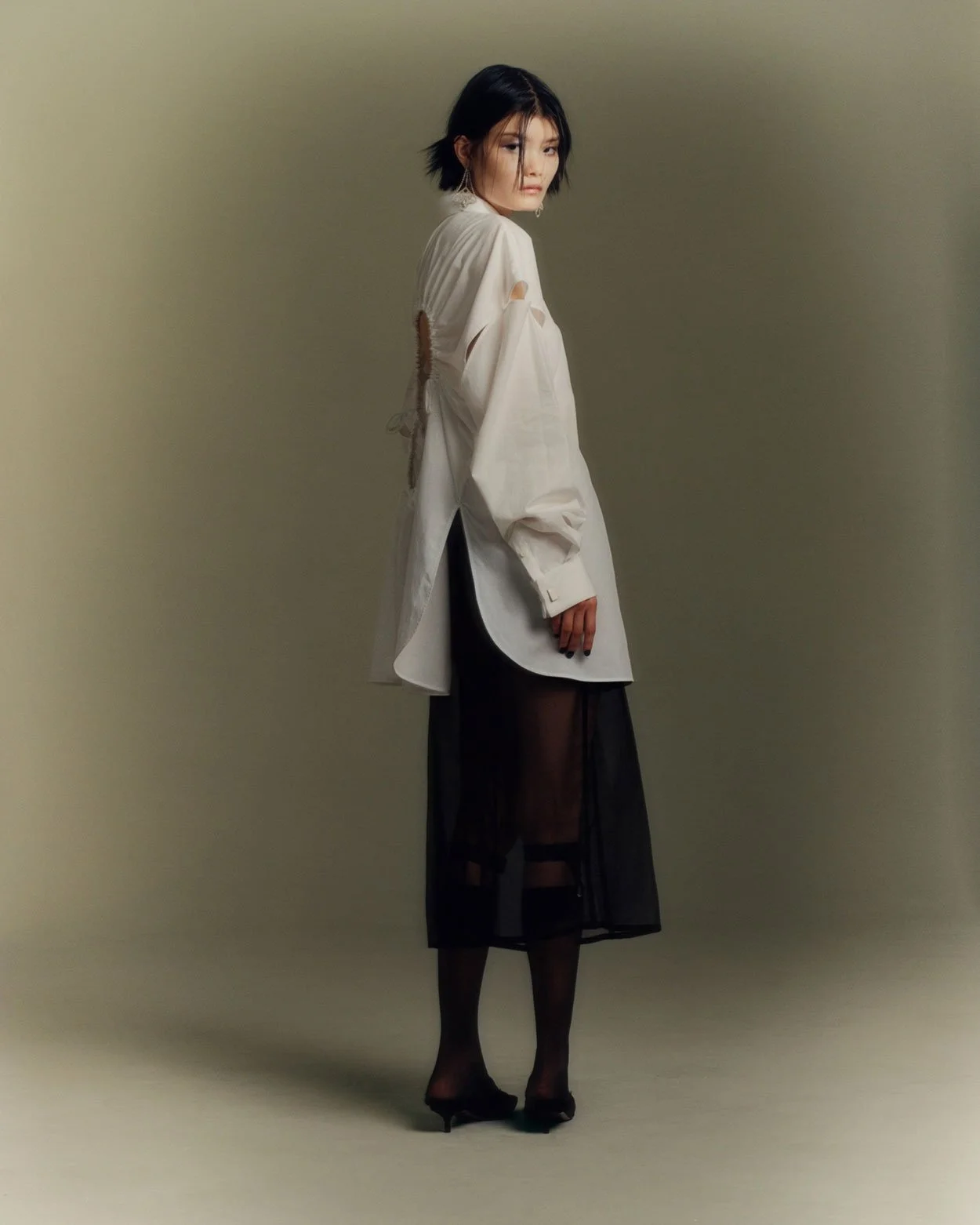 Coat MILO MARIA, shirt BRUNELLO CUCINELLI,