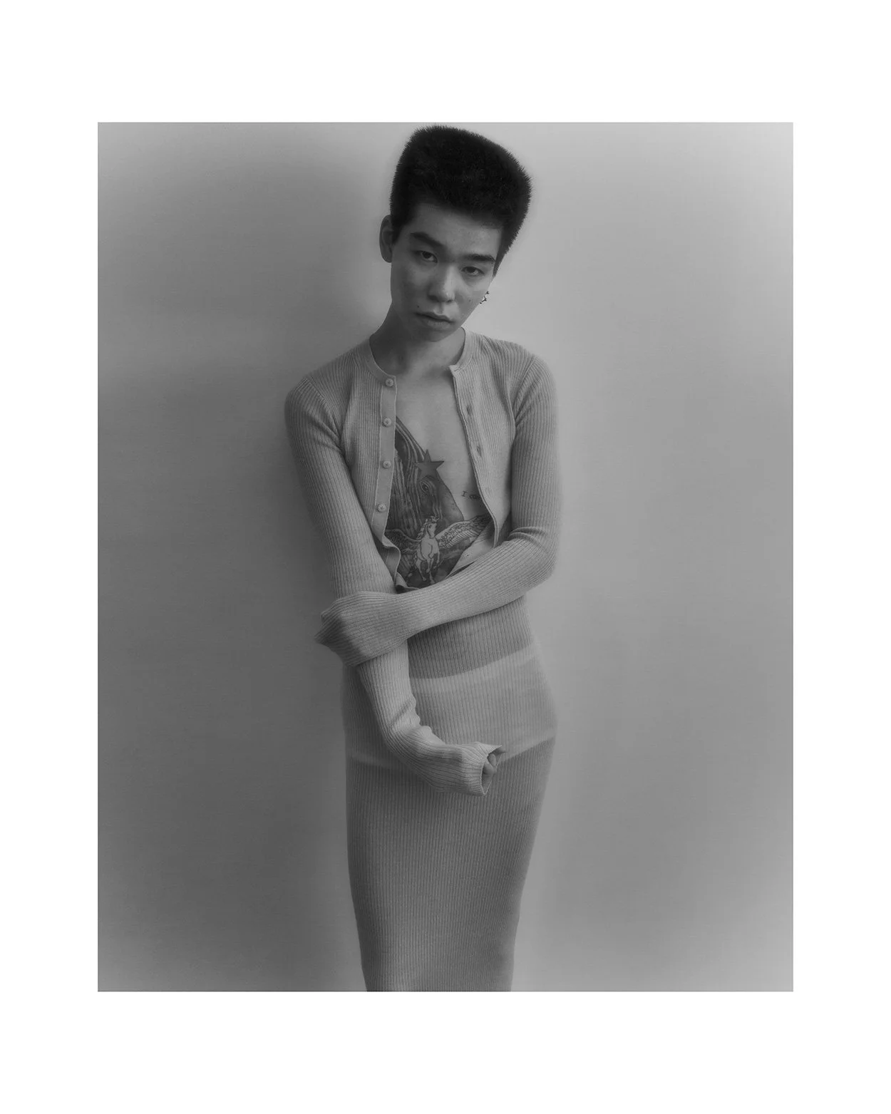 RYOMA TANAKA wears dress ANN DEMEULEMEESTER,