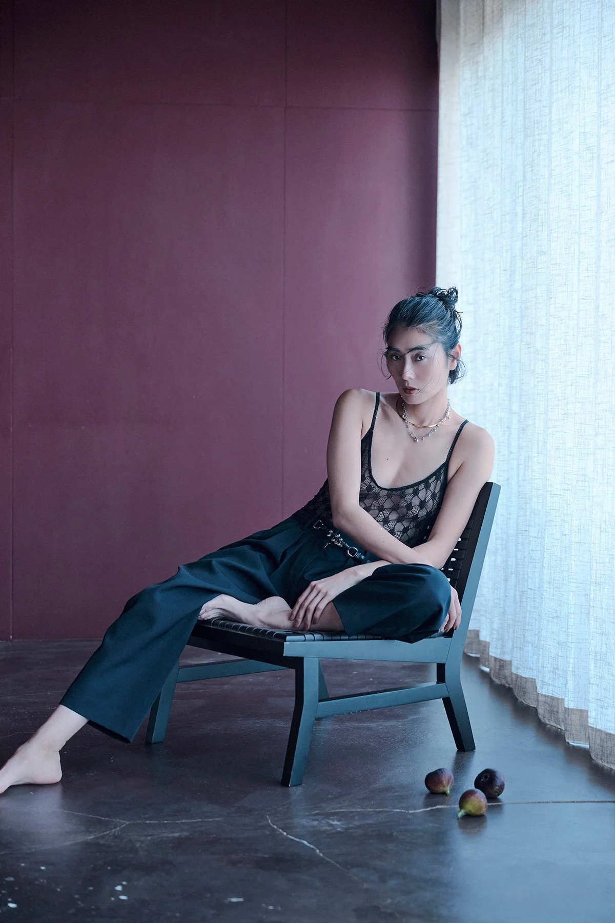Where the tide cools and winter light grazes the skin, the body slips into a quiet balance between motion and stillness. Along the shore, soft light softens the boundary between figure and landscape, letting water and wind shape each moment. Inside, silence mirrors the distant sea, subtle, steady, always present. Together, these scenes form an intimate study of elegance suspended between tide and time.
